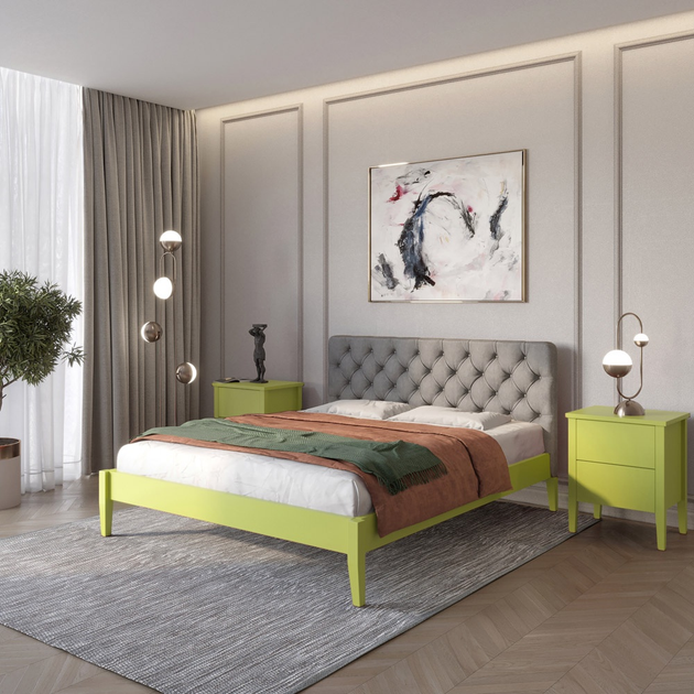 Односпальне дерев'яне ліжко Mebigrand Рим ДК Лайм (S3050G70Y)/Аляска 93 (Сірий) Б3 70х200 см