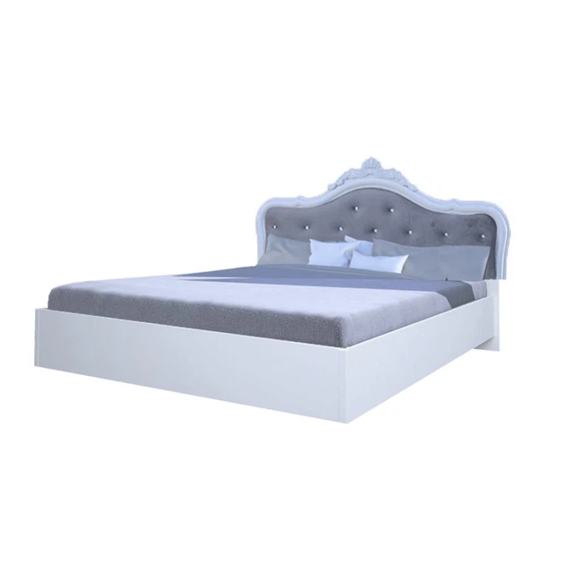 Ліжко двоспальне з м'яким узголів'ям і декором у формі корони з ДСП і МДФ 160x200 Луїза LZ-36-30-WB MiroMark білий глянець (