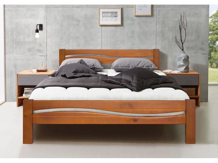 Ліжко з натурального дерева сосна Хвиля 180x200 яблуня Стема