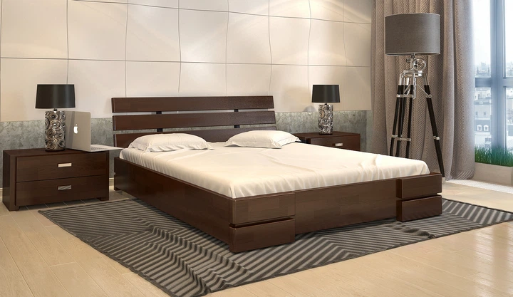 Ліжко дерев'яне бук 140х200 TM Arbor Drev Далі Люкс горіх темний