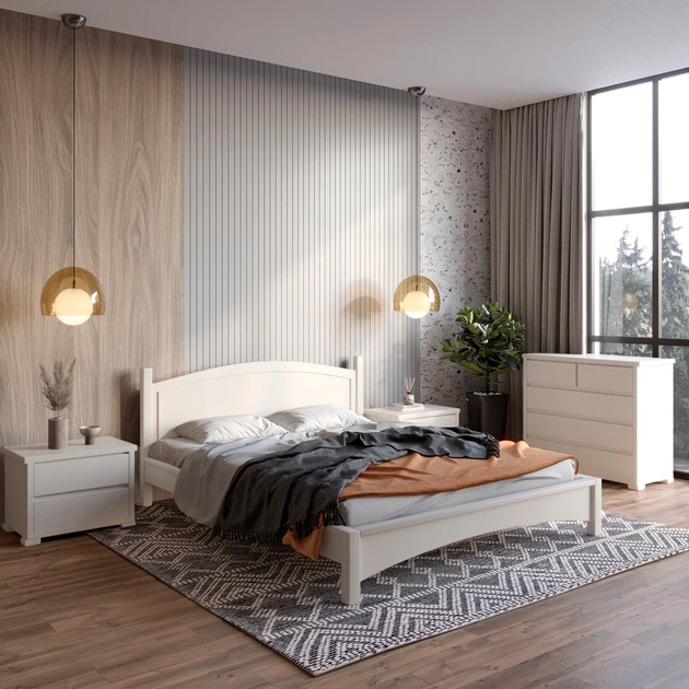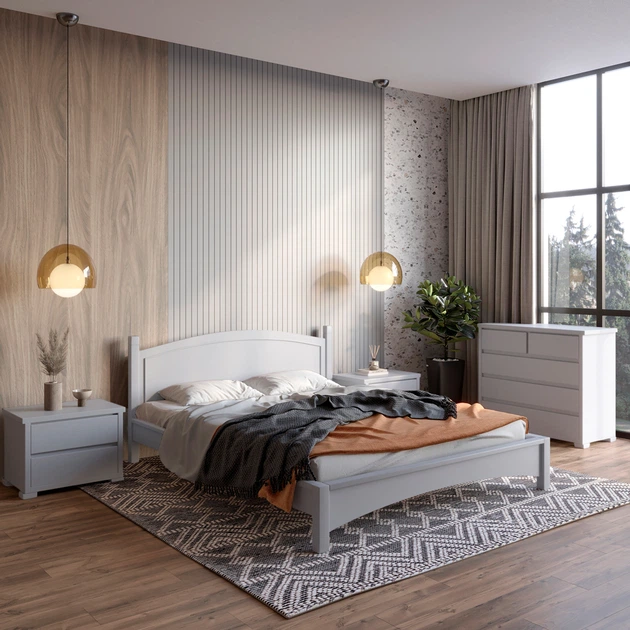 Двоспальне дерев'яне ліжко Mebigrand Монако Білий (RAL9003) 160х190 см (MBG-4322)