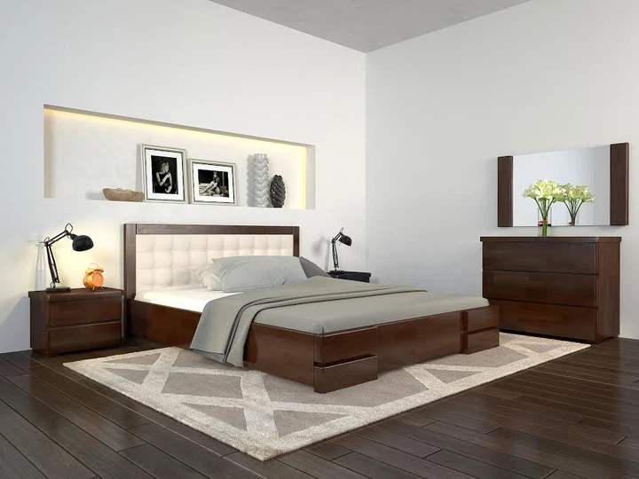 Ліжко дерев'яне бук 140х200 TM Arbor Drev Регіна Люкс горіх темний