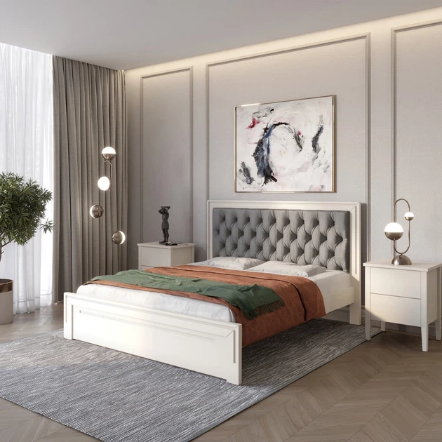 Двоспальне дерев'яне ліжко Mebigrand Торонто Т5 Білий (RAL9003)/Аляска 93 (сірий) 160х190 см (MBG-8993)