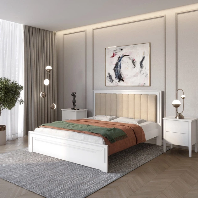 Двоспальне дерев'яне ліжко Mebigrand Торонто Т1 Білий (RAL9003)/Аляска 23 (бежевий) 160х200 см (MBG-8677)