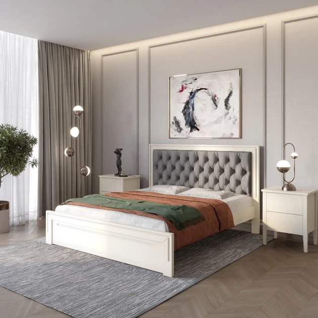 Двоспальне дерев'яне ліжко Mebigrand Торонто Т3 Айворі (S0505Y30R)/Аляска 93 (сірий) 160х200 см (MBG-7363)