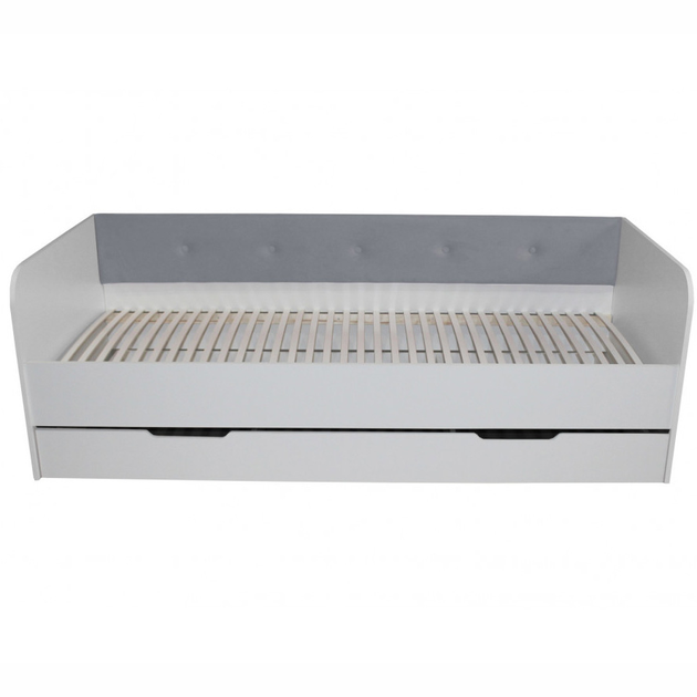 Ліжко односпальне Valencia Light grey Віоріна Деко з висувною скринькою 90х190 см (без бортика/без матраца) Світло-сірий