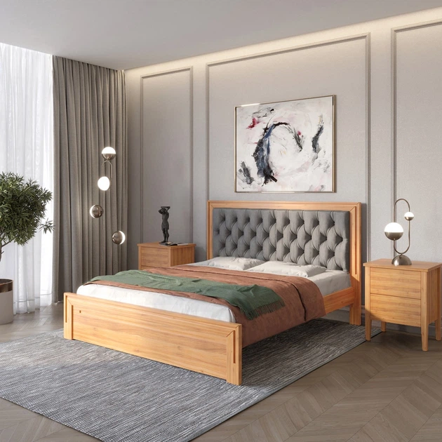 Двоспальне дерев'яне ліжко Mebigrand Торонто Т2 Яблуня/Аляска 93 (сірий) 160х190 см (MBG-9507)