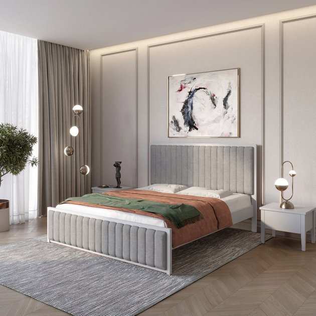 Односпальне дерев'яне ліжко Mebigrand Відень Білий (RAL9003)/Аляска 93 (Сірий) 90х190 см (MBG-10750)