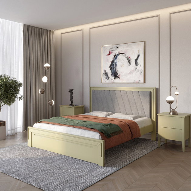 Односпальне дерев'яне ліжко Mebigrand Торонто Т6 Оливковий (RAL1020)/Аляска 93 (сірий) 80х200 см (MBG-9777)