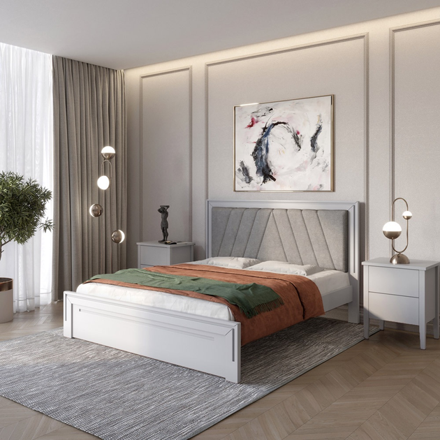 Односпальне дерев'яне ліжко Mebigrand Торонто Т6 Білий (RAL9003)/Аляска 93 (сірий) 90х200 см (MBG-9835)