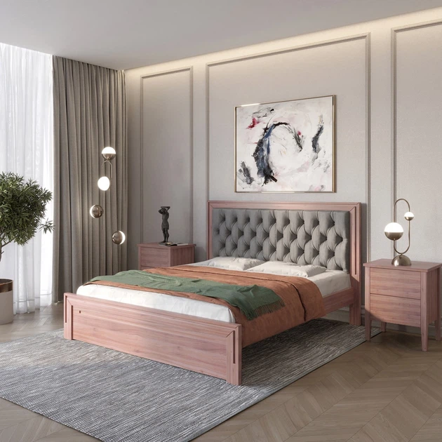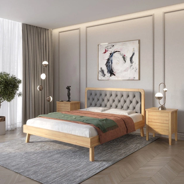 Двоспальне дерев'яне ліжко Mebigrand Торонто Т2 Горіх світлий/Аляска 93 (сірий) 160х200 см (MBG-10020)