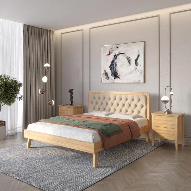 Двоспальне дерев'яне ліжко Mebigrand Торонто Т5 Горіх світлий/Аляска 23 (бежевий) 160х190 см (MBG-10482)