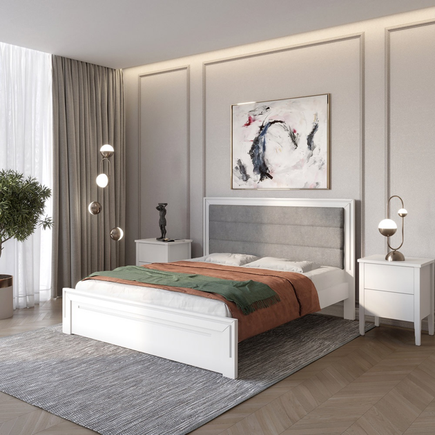 Односпальне дерев'яне ліжко Mebigrand Торонто Т5 Білий (RAL9003)/Аляска 93 (сірий) 90х190 см (MBG-9001)