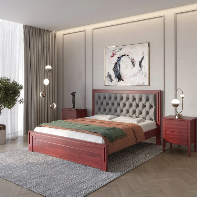 Двоспальне дерев'яне ліжко Mebigrand Торонто Т1 Махонь/Аляска 93 (сірий) 180х190 см (MBG-7817)
