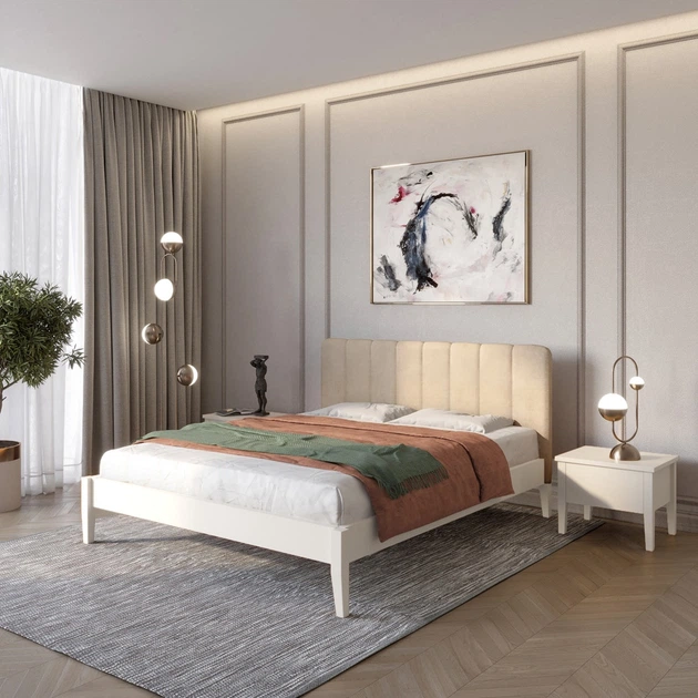 Двоспальне дерев'яне ліжко Mebigrand Венеція ДК Білий (RAL9003)/Аляска 23 (Бежевий) 180х200 см (MBG-5772)
