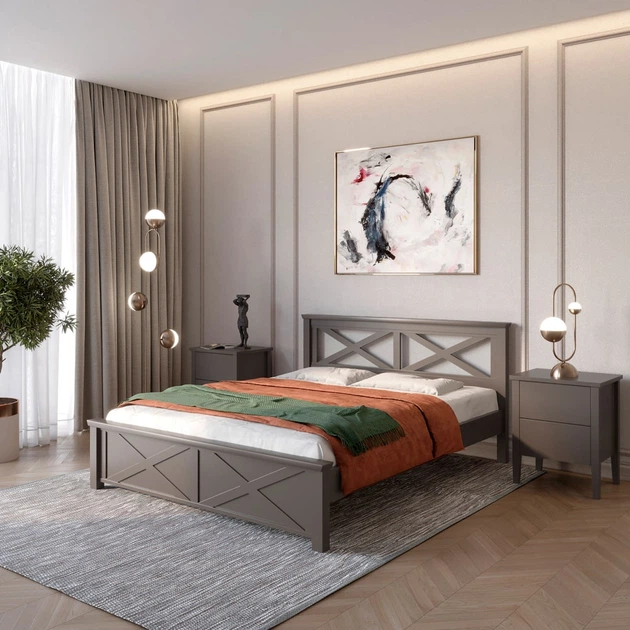 Двоспальне дерев'яне ліжко Mebigrand Прованс Н Графітовий (RAL9011) 180х190 см (MBG-3100)