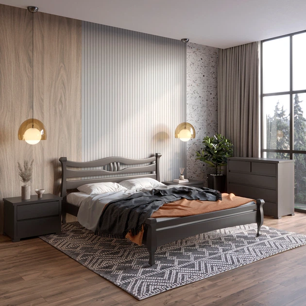 Полуторне дерев'яне ліжко Mebigrand Даллас Графітовий (RAL9011) 120х190 см