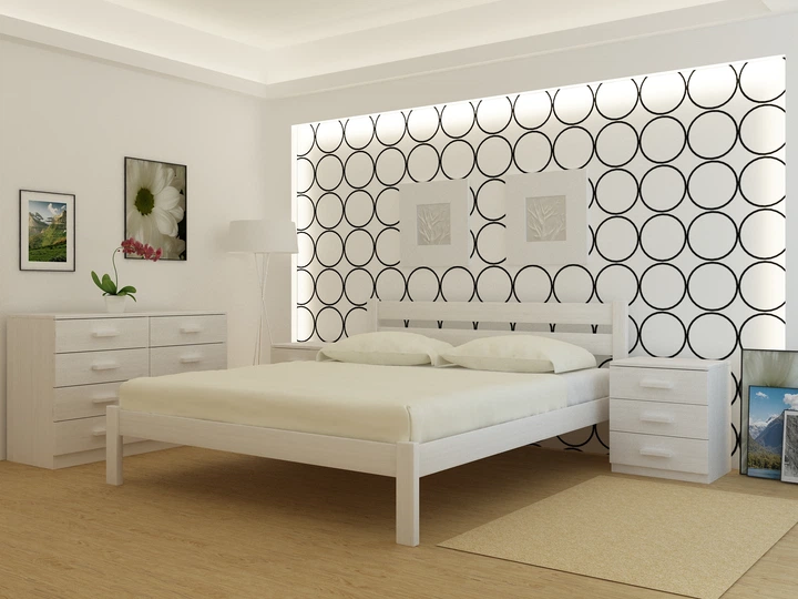 Ліжко Frankfurt 180*190 з Вільхи, Біле, Ламелі через 45 мм. Latoflex - Ортопедичні