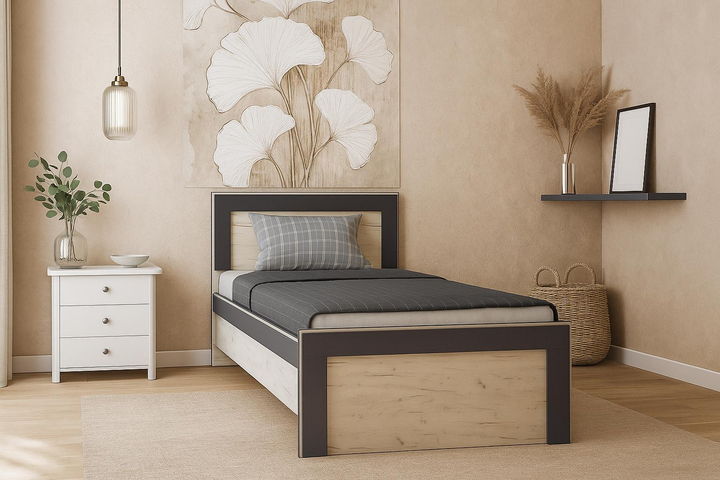 Ліжко односпальне з ламінованого ДСП Комфорт 80x190 з висувними ящиками дуб сонома/трюфель Еверест (без матраца)