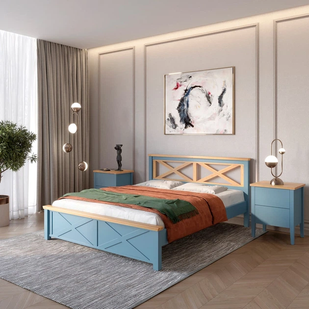 Двоспальне дерев'яне ліжко Mebigrand Прованс Н Сіро-синій (S7010R90B)/Горіх світлий 180х190 см (MBG-3142)