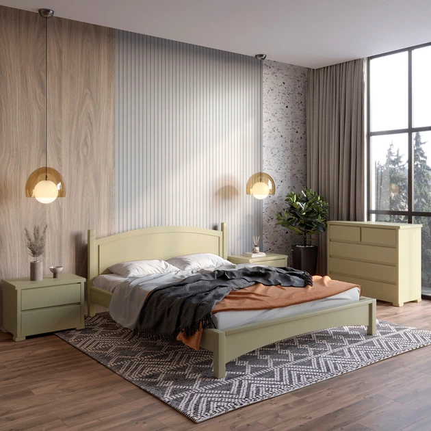 Двоспальне дерев'яне ліжко Mebigrand Мангеттен Н Оливковий (RAL1020) 180х190 см (MBG-3424)