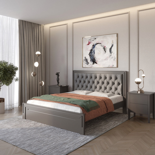 Односпальне дерев'яне ліжко Mebigrand Торонто Т5 Графітовий (RAL9011)/Аляска 93 (сірий) 90х190 см (MBG-8942)
