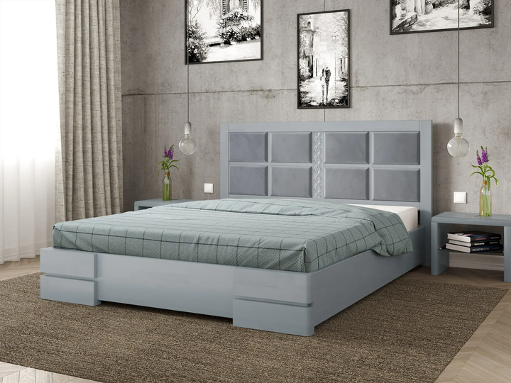 Ліжко двоспальне з натурального дерева бук 180х200 без матраца Кардинал 2 Сірий Арбор Дерево