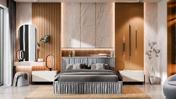 Ліжко двоспальне з підйомним механізмом з м'яким узголів'ям 180x200 Ванесса 3 Світ Меблів Сірий (ДСП/Тканина Велюр Багіра)