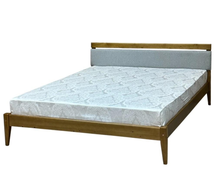 Двоспальне дерев’яне ліжко з м'якою вставкою Скіф Л-257 дуб карамель / твіст-18 120х200