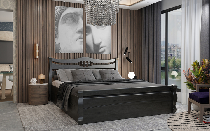 Ліжко з натурального дерева сосна з підйомним механізмом Даллас-ПМ 180x200 венге Stemma