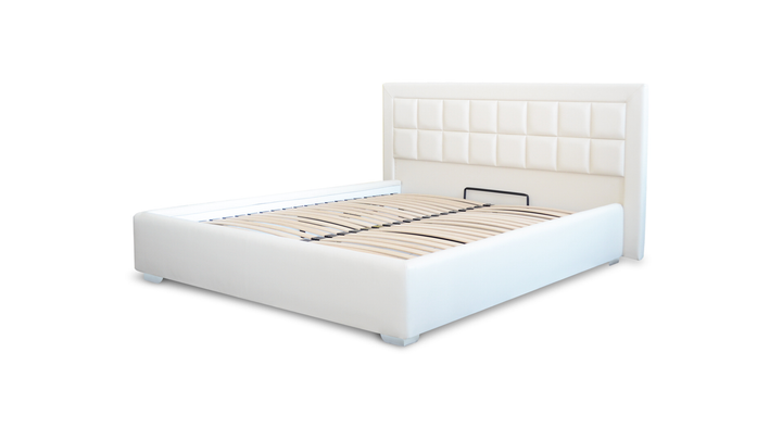 Двоспальне ліжко з масиву дуба Лоренцо 180х200 з підйомним механізмом Біла емаль Крок ламелів 4,5 см.