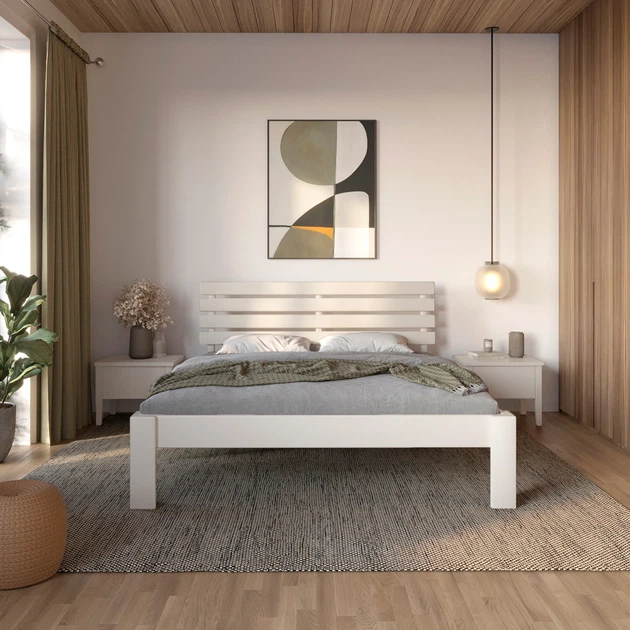Двоспальне ліжко дерев'яне Модена 160х190 Біла емаль Крок ламелів 5,5 см.