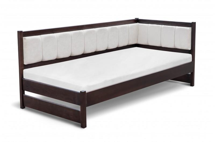 Ліжко односпальне дерев'янне з м'яким узголів'ям Мікс Меблі Лили темний горіх 90 см