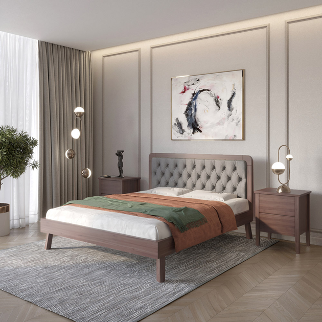 Односпальне дерев'яне ліжко Mebigrand Токіо Горіх темний/Аляска 93 (Сірий) 90х190 см (MBG-11141)