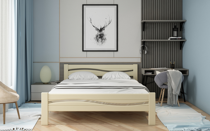 Ліжко з натурального дерева сосна Хвиля 90x200 айворі Stemma