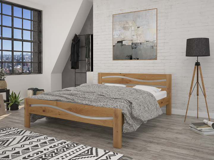 Ліжко двоспальне 180х200 Неаполь MebiGrand Горіх світлий (натуральне дерево) (з ламелями/без матраца)