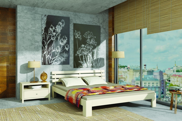 Ліжко Frankfurt 180*200 з Вільхи, Біле, Ламелі через 45 мм. Latoflex - Ортопедичні