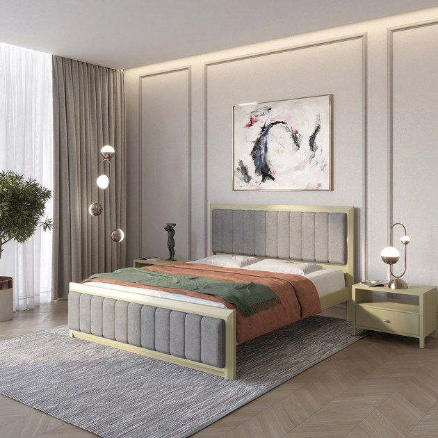 Односпальне дерев'яне ліжко Mebigrand Барселона Б5 Айворі (S0505Y30R)/Аляска 93 (Сірий) 90х200 см (MBG-14235)