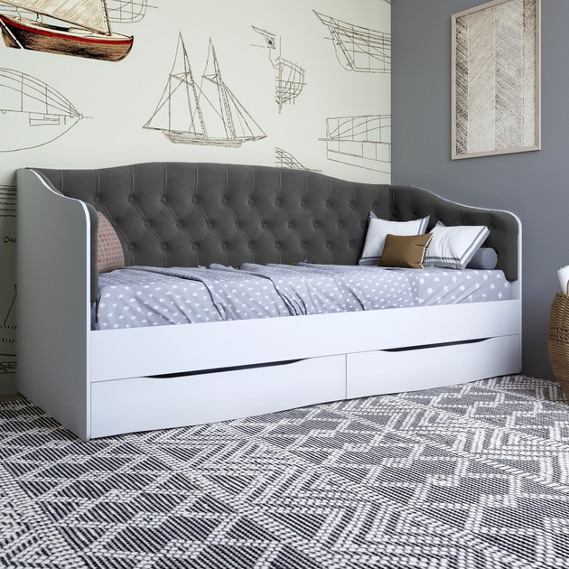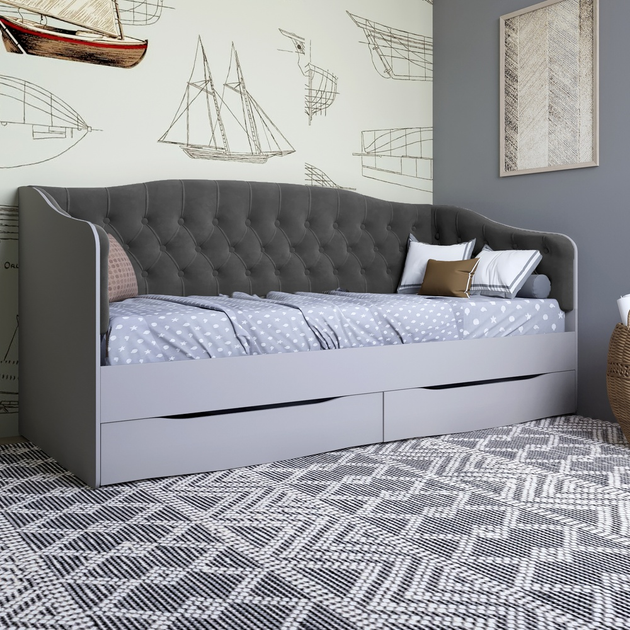Ліжко дитяче односпальне LION Л-9 з м'якою спинкою і висувними шухлядами 190x90 см Антрацит/Лілі-95 (LION-041483)
