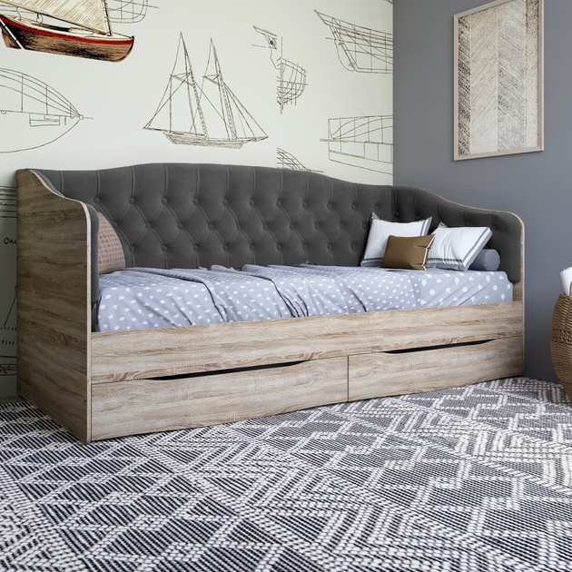 Ліжко дитяче односпальне LION Л-9 з м'якою спинкою і висувними шухлядами 190x90 см Дуб сонома/Лілі-95 (LION-041491)