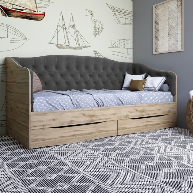 Ліжко дитяче односпальне LION Л-9 з м'якою спинкою і висувними шухлядами 190x90 см Дуб сонома/Лілі-02 (LION-041481)