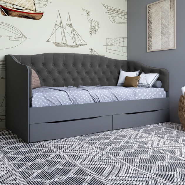 Ліжко дитяче односпальне LION Л-9 з м'якою спинкою і висувними шухлядами 190x90 см Антрацит/Лілі-02 (LION-041467)