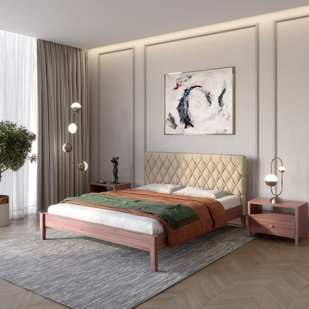 Односпальне дерев'яне ліжко Mebigrand Лондон ДК Горіх лісовий/Аляска 23 (Бежевий) Б1 90х190 см (MBG-6744)