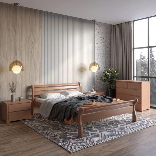 Односпальне дерев'яне ліжко Mebigrand Верона Коричневий (RAL8025) 90х200 см (MBG-4491)