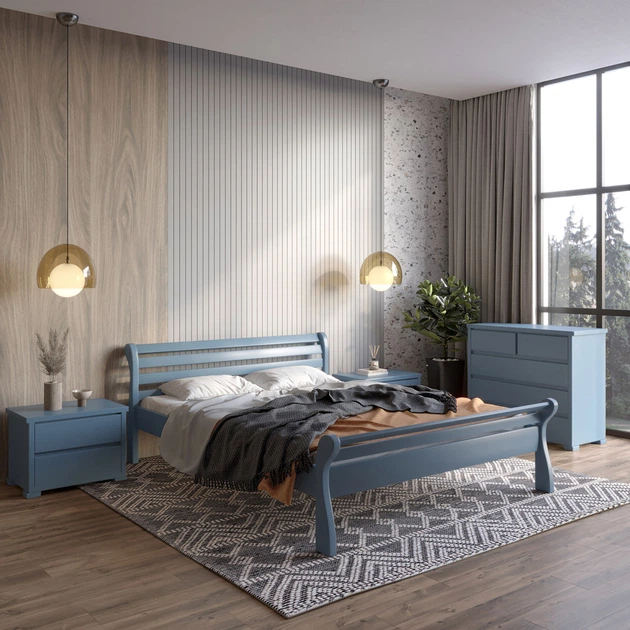 Односпальне дерев'яне ліжко Mebigrand Верона Сіро-синій (S7010R90B) 90х200 см (MBG-4603)