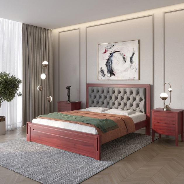 Односпальне дерев'яне ліжко Mebigrand Торонто Т2 Махонь/Аляска 93 (сірий) 80х200 см (MBG-8463)