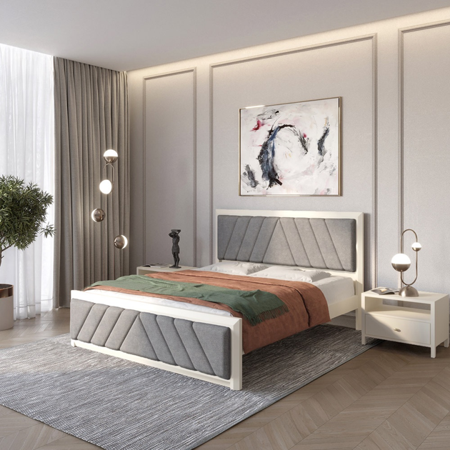 Односпальне дерев'яне ліжко Mebigrand Барселона Б6 Айворі (S0505Y30R)/Аляска 93 (Сірий) 80х200 см (MBG-14449)