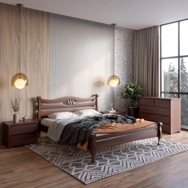 Двоспальне дерев'яне ліжко Mebigrand Даллас Горіх темний 140х200 см (MBG-5922)