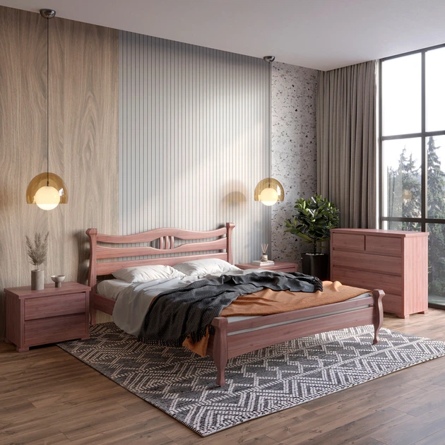 Двоспальне дерев'яне ліжко Mebigrand Чикаго Сіті Махонь 140х200 см (MBG-9982)