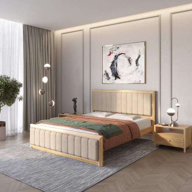 Односпальне дерев'яне ліжко Mebigrand Барселона Б1 Горіх лісовий/Аляска 23 (Бежевий) 90х200 см (MBG-11582)